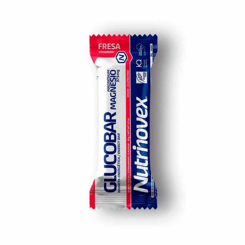 La barrita energética Glucobar está orientada a todos aquellos deportistas que necesitan un aporte energético inmediato en situaciones de esfuerzo y desgaste. Rica en Magnesio No nos conformamos con poner un poco de Magnesio. La barrita Glucobar incluye en su fórmula 375mg que corresponden al 100% del VRN. *VRN: Valores de Referencia de Nutrientes Pensada para darlo todo. Con Glutamina, Potasio, Carnitina y Vitaminas. La Glucobar está formulada para que contribuya a regeneral los tejidos y músculos, retrasar la fatiga muscular, evitar la pérdida de fuerza y aliviar los dolores menores de la articulaciones.